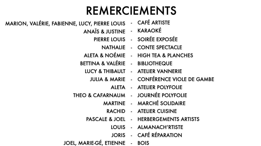 Un certain nombre de projets que nous avions imaginé en 2024 n’ont pas vu le jour ou n’ont pas fait long feu. Ils restent toujours pertinents mais attendent sagement leur heure (covoiturage, Troc Savoirs, Almanach’rtiste, café réparation). Rien de grave à cela, c’est la vie d’une association qui sait ou elle veut aller mais qui ne connait pas précisément le chemin qu’elle doit emprunter !